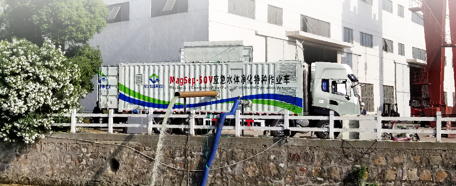 我司還擁有一款基于超磁分離技術的車載式一體化凈水系統(tǒng)--MagSep-SOV應急水體凈化特種作業(yè)車,此款作業(yè)車擁有獨立自主的專利技術及知識產權,整體技術處于國內優(yōu)秀水平。MagSep-SOV應急水體凈化特種作業(yè)車具有高機動性、靈活性、無間歇連續(xù)式運行、處理通量大、凈化效率高、應用范圍廣泛、不受地形影響等多方位優(yōu)勢,應急性強,可應對多場景水污染處置需求。對雨季溢流污染可以快速、高效地凈化受污染水體,從而減輕雨季溢流污染對環(huán)境的影響。該特種作業(yè)車兼具行走系統(tǒng)、取水系統(tǒng)、排水系統(tǒng)、照明系統(tǒng)、發(fā)電系統(tǒng)、水處理系統(tǒng)及污泥處置系統(tǒng)等七大功能,能夠快速機動地完成水污染防治等工作。尤其是在暴雨初期,由于初始沖刷現(xiàn)象,污染程度往往會加劇,而應急水體凈化特種作業(yè)車能夠迅速介入,有效減輕環(huán)境污染,保護水資源,為水污染治理和防治提供高效靈活的應對模式。